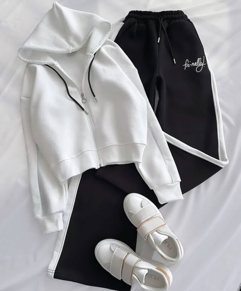 - ست هودی کراپ شلوار کلاهدار زنانه